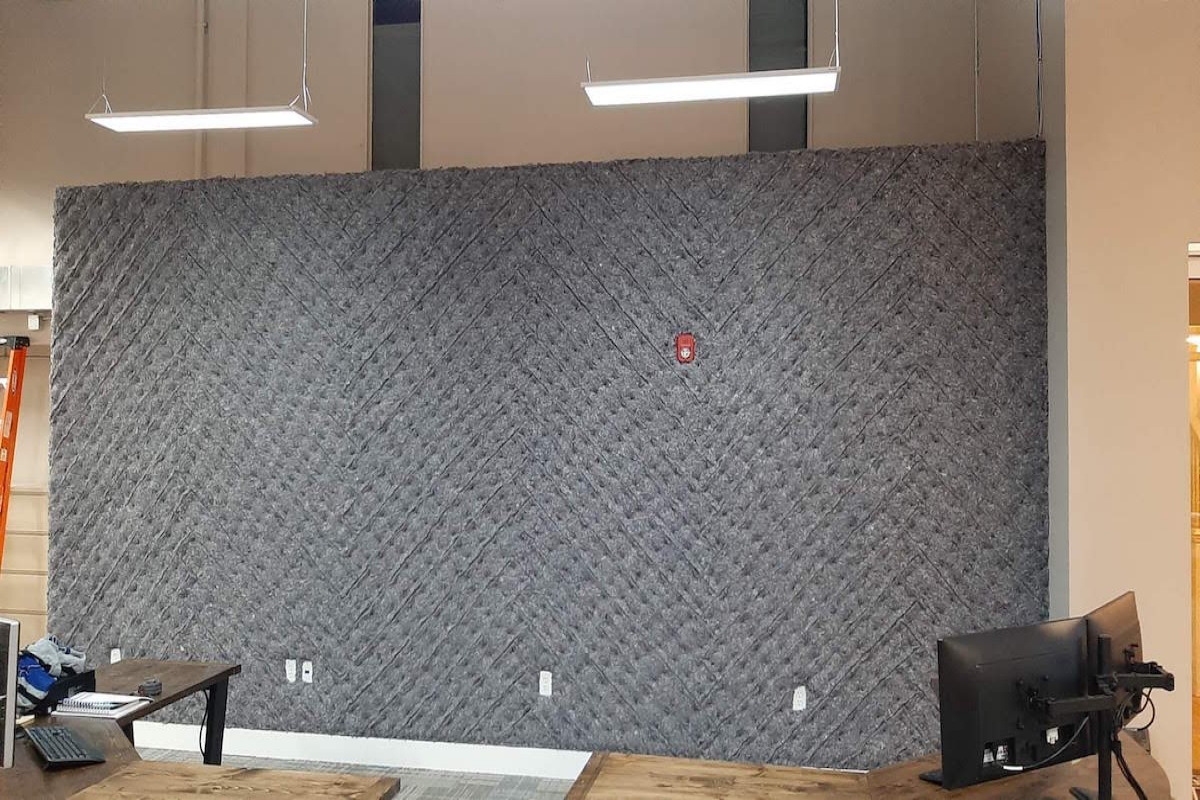 Acoustic performance is more than just a function that occurs within a wall. Our acoustic panels are a perfect eco-friendly solution to integrate with fabric textiles to enhance the aesthetic of your space. These panels are also made up of 90% post consumer recycled carpet and clothing materials.